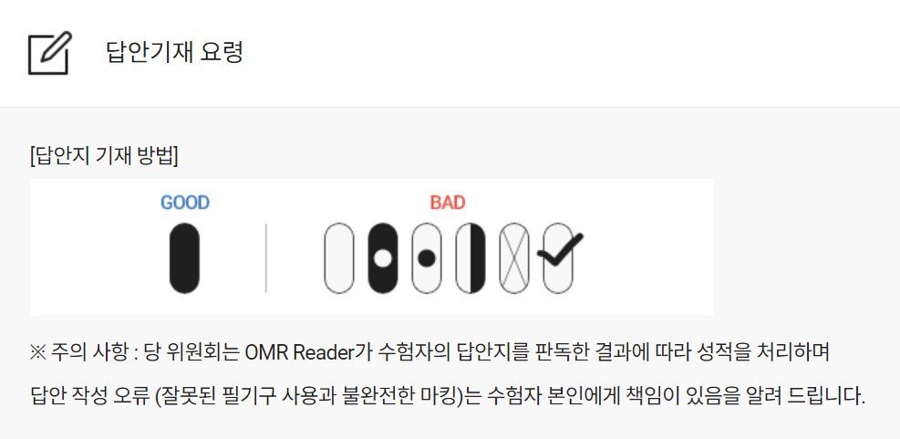 * 토익시험 답안지(OMR카드) 작성시, 컴싸 (컴퓨터싸인펜)이 아닌, '연필' 또는 '샤프' 로 마킹해야하고, 수정시, '지우개'로 지우고 다시 마킹하면 됩니다.