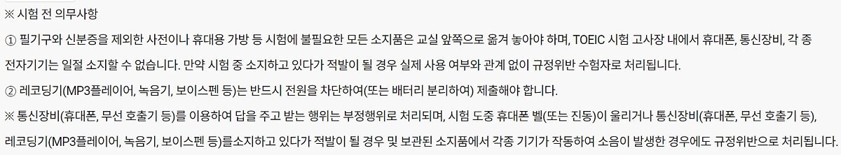 ※ 토익수험표는 따로 인쇄 및 지참할 필요는 없습니다.